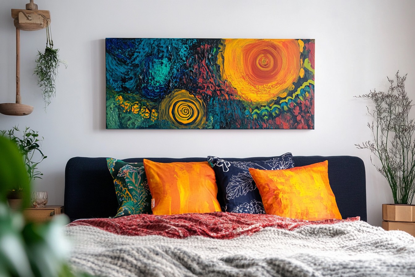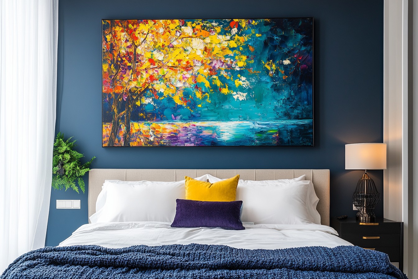 Les tableaux magnifiques dans la chambre apportent calme, élégance et style personnel dans un espace intime. Qu’il s’agisse de fleurs douces, de paysages calmes, d’abstractions légères ou d’art figuratif simple, ces œuvres aident à créer une ambiance adaptée au repos. Choisies pour leurs couleurs douces et leurs compositions équilibrées, elles ajoutent chaleur, style et une expression émotionnelle légère, transformant la chambre en espace confortable.