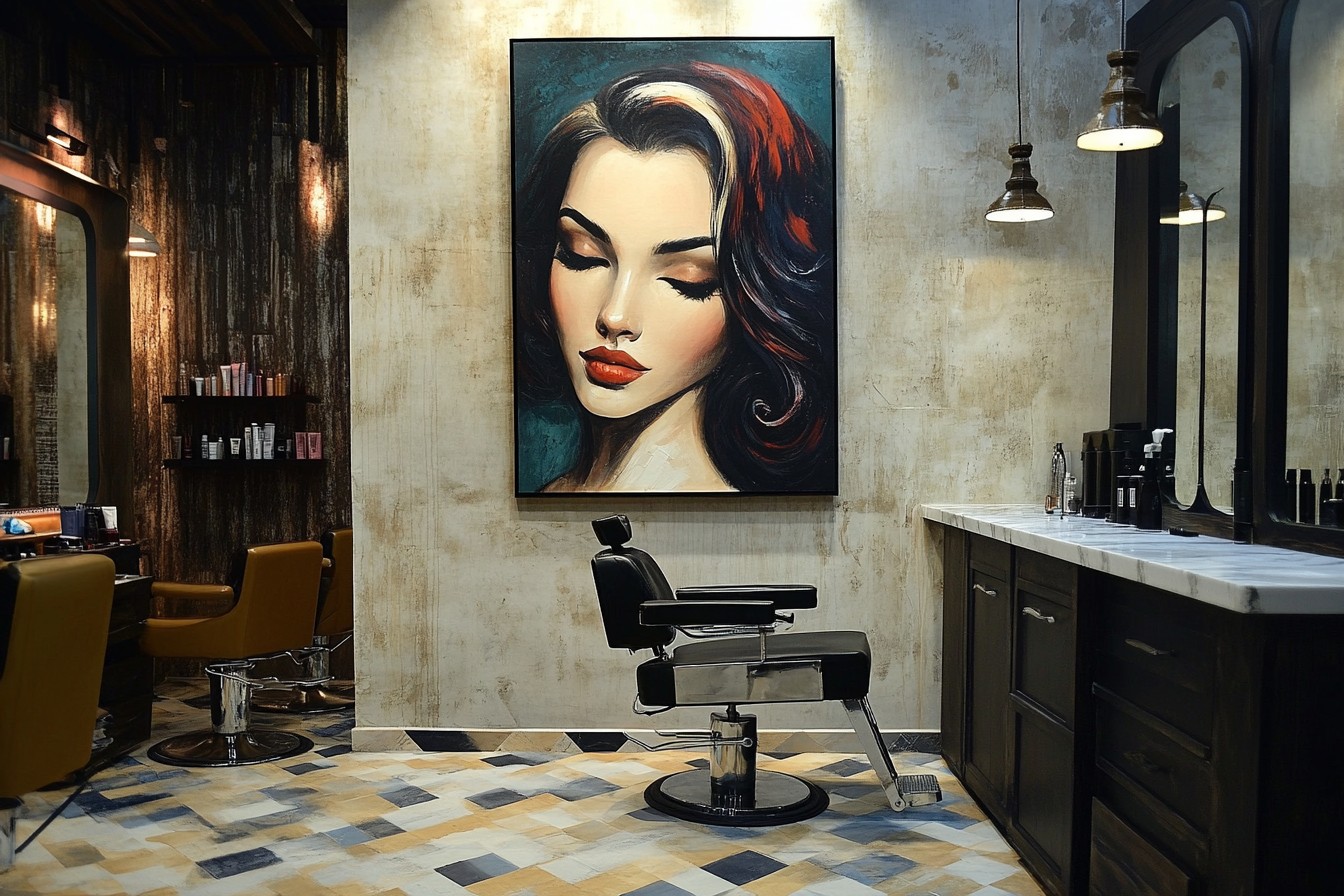 L’arte decorativa per il salone di parrucchieri deve mostrare stile, creativita e un ambiente accogliente. Forme astratte, ritratti moderni, elementi floreali o disegni semplici a linea continua sono molto adatti. Questi quadri migliorano l’aspetto del salone e aiutano a creare un ambiente rilassante. Con una buona combinazione di colori, superfici e tema, l’arte decorativa puo rendere il salone moderno e piacevole. Lo spazio diventa piu vivo e adatto a un ambiente dedicato alla cura dei capelli e all’espressione personale.